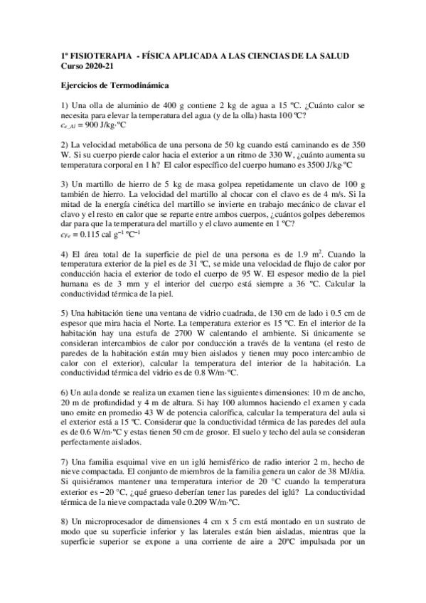 He publicado nuevos ejercicios de 1º Física Aplicada a las Ciencias de la Salud: Ejercicios-calor-temperatura.pdf