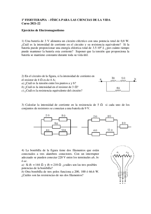 He publicado nuevos ejercicios de 1º Física Aplicada a las Ciencias de la Salud: Ejercicios-electromagnetismo-21-22.pdf