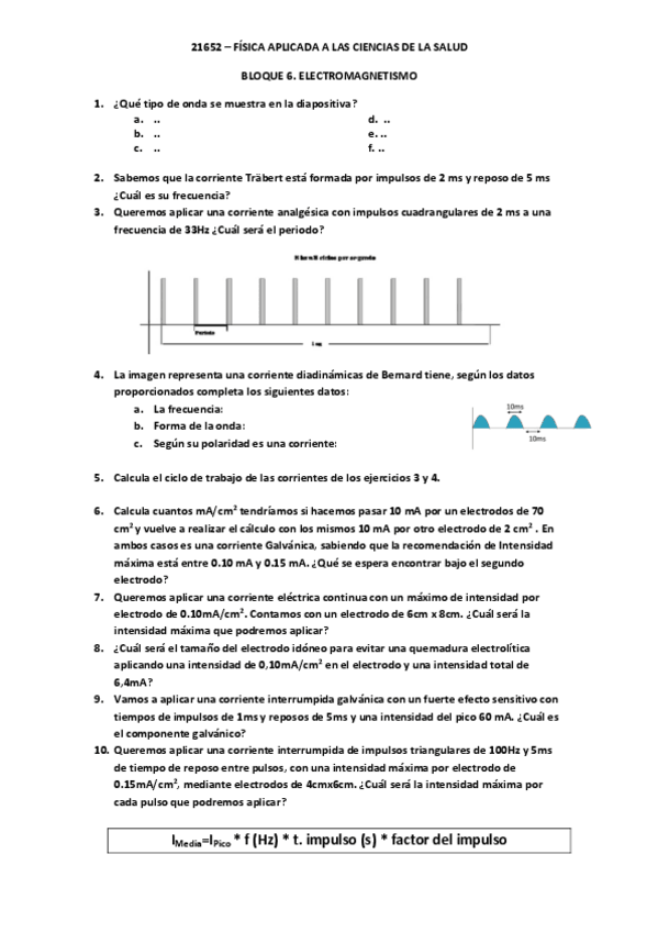 He publicado nuevos ejercicios de 1º Física Aplicada a las Ciencias de la Salud: Ejercicios-Electroterapia.pdf