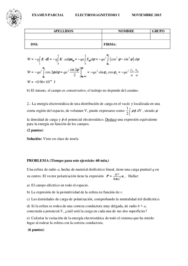 He publicado nuevos examenes de 2º Electromagnetismo I: Solución examen parcial noviembre 2015.pdf