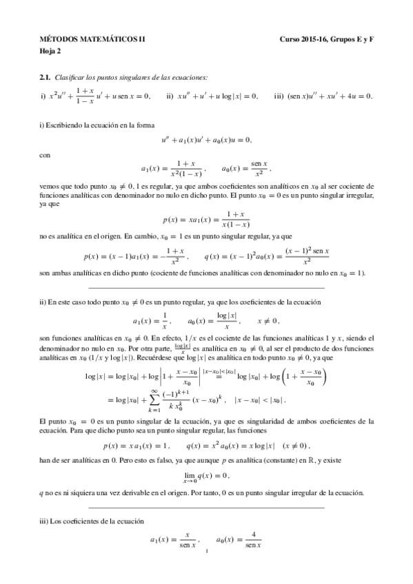 He publicado nuevos ejercicios de 2º Métodos Matemáticos I: Solución Ejercicios Mmii