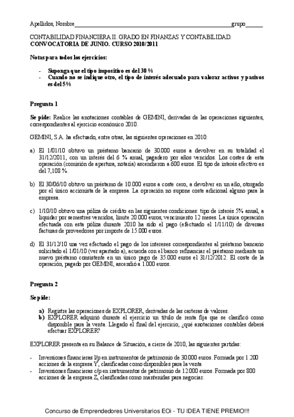 He publicado nuevos apuntes de 2º Contabilidad Financiera II: examen 2011 junio. RESUELTO.pdf