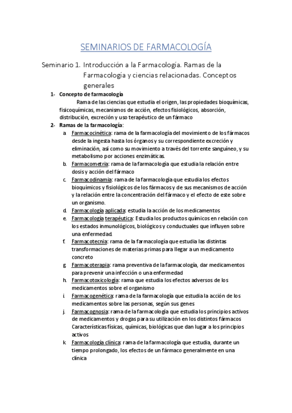 Seminarios Farmacología I
