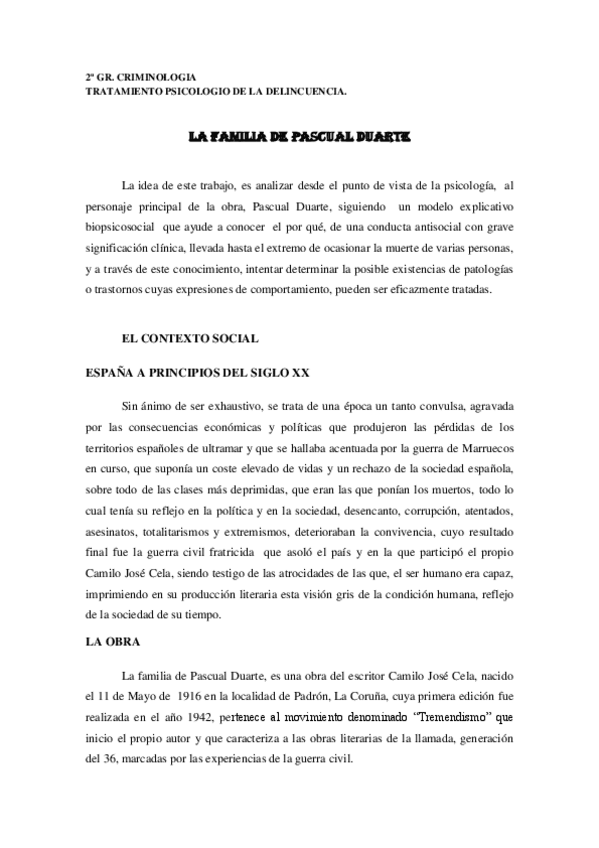 He publicado nuevos trabajos de 2º Delincuencia Juvenil: Trabajo la Familia de Pascual Duarte