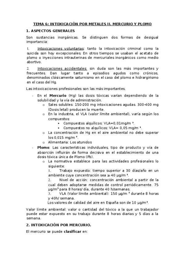 He publicado nuevos apuntes de 1º Introducción a las Ciencias Forenses: Toxicología y Medicina Legal y Forense: TEMA 6. INTOXICACIÓN POR METALES II. MERCURIO Y PLOMO docx.docx