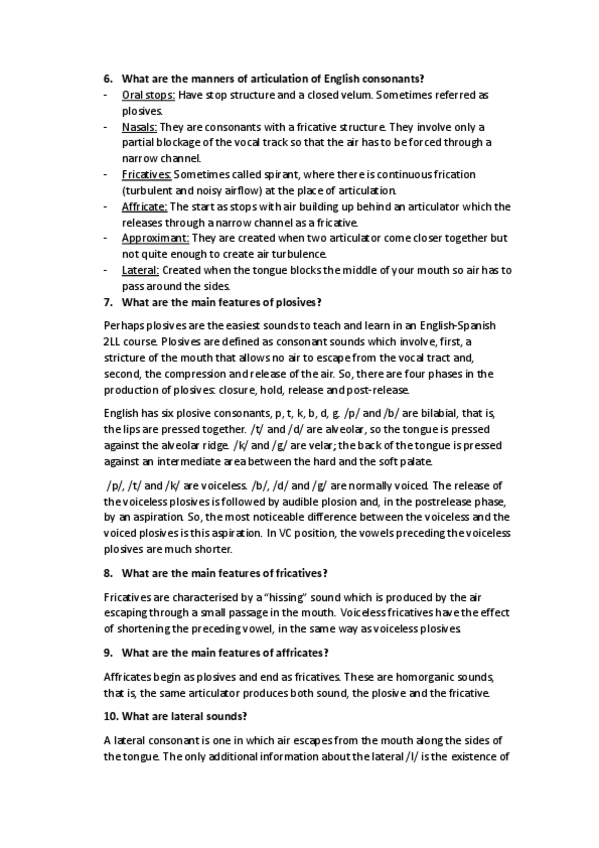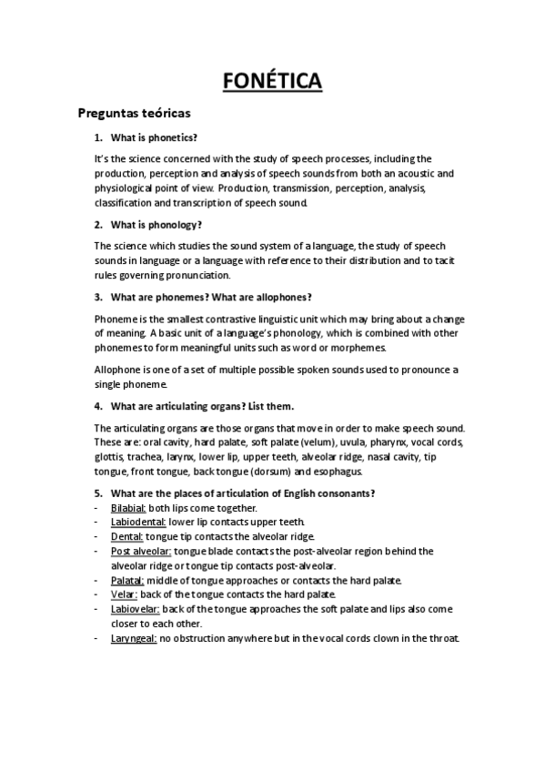 Veinte preguntas cortas importantes para el examen, dictadas por el profesor.