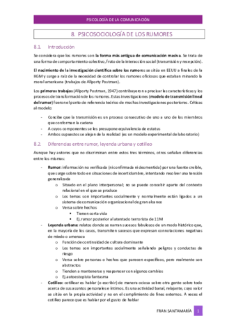 He publicado nuevos apuntes de 1º Psicología de la Comunicación: Tema 8 Psicología de los rumores.pdf