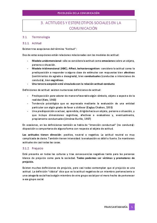 He publicado nuevos apuntes de 1º Psicología de la Comunicación: Tema 3 Actitudes y estereotipos sociales en la comunicación.pdf