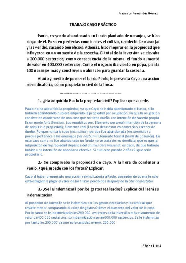Trabajo Caso Practico Derechos Reales Derecho Romano