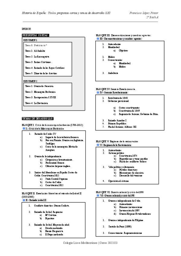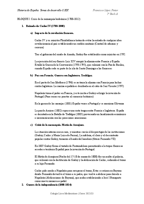 Resumen de los temas de desarrollo del siglo XIX (Excepto Isabel II y Sexenio); En selectividad hice el primer bloque (Crisis de la monarquía borbónica), tuve un 8,75. SUERTE!!