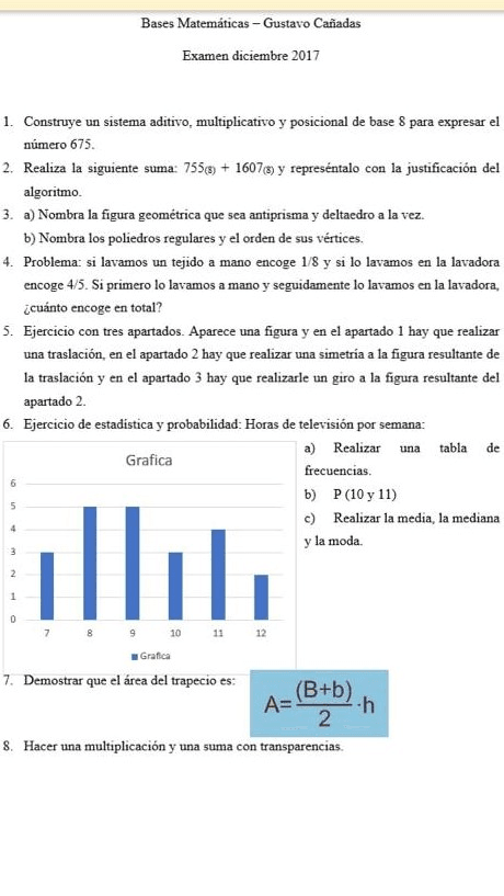 He publicado nuevos examenes de 1º Bases Matemáticas Para la Educación Primaria: Exámenes Bases Matemáticas 2018 y 2019