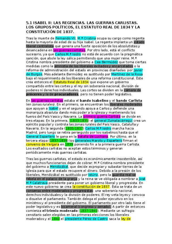 5.1 ISABEL II: LAS REGENCIAS. LAS GUERRAS CARLISTAS. LOS GRUPOS POLÍTICOS, EL ESTATUTO REAL DE 1834 Y LA CONSTITUCIÓN DE 1837.