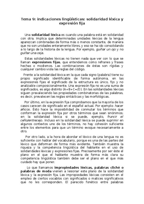 He publicado nuevos apuntes de 1º LENGUA A NIVEL 1 ESPAÑOL: Tema 9 - indicaciones lingüísticas- solidaridad léxica y expresión fija. Impropiedades léxicas.odt