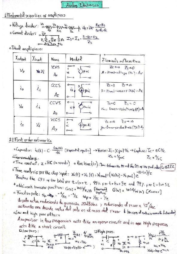 He publicado nuevos apuntes de 2º Electrónica Analógica: Resumen-Analogica.pdf
