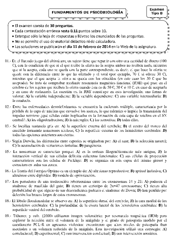 Psicobiología de años anteriores.