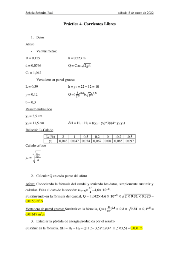 Prácticas 2 y 4 Hidráulica