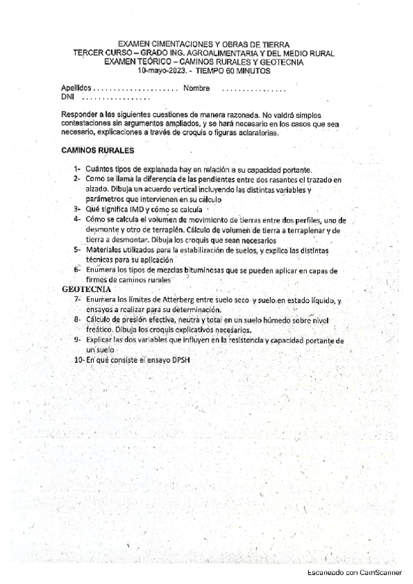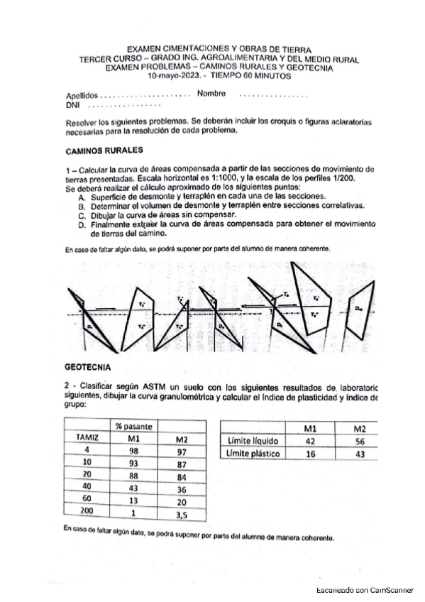 He publicado nuevos examenes de 3º Cimentaciones y obras de tierras: Parcial-Caminos.pdf