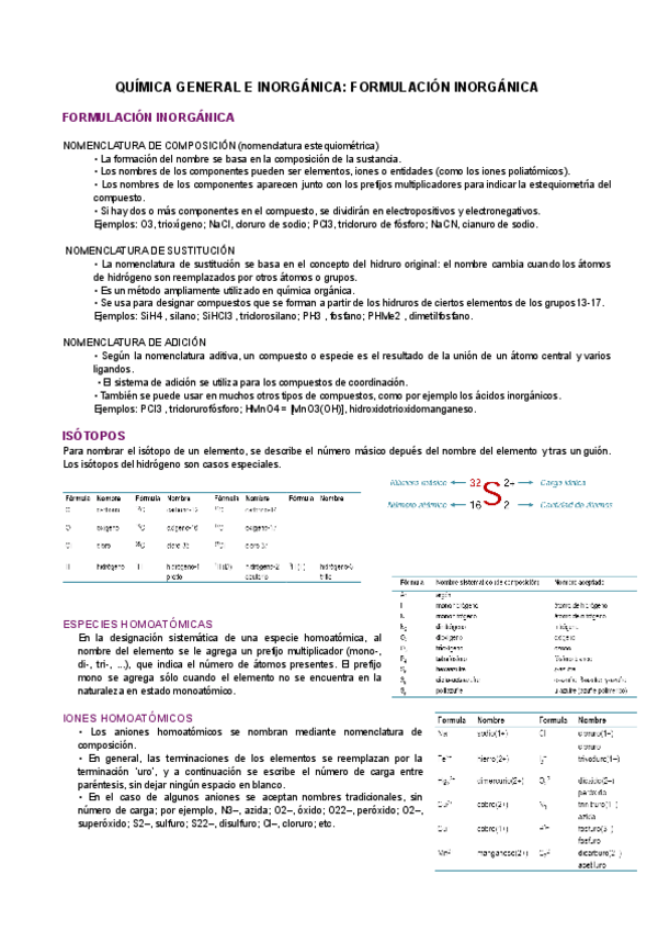 APUNTES COMPLETOS FORMULACIÓN INORGÁNICA + EJERCICIOS TIPO EXAMEN