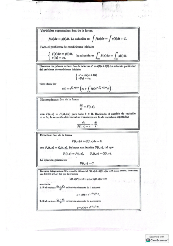 PREPARACIÓN EXAMEN ENTERO ECUACIONES DIFERENCIALES. Hoja para llevar al examen + todos los ejercicios resueltos tipo por tipo.