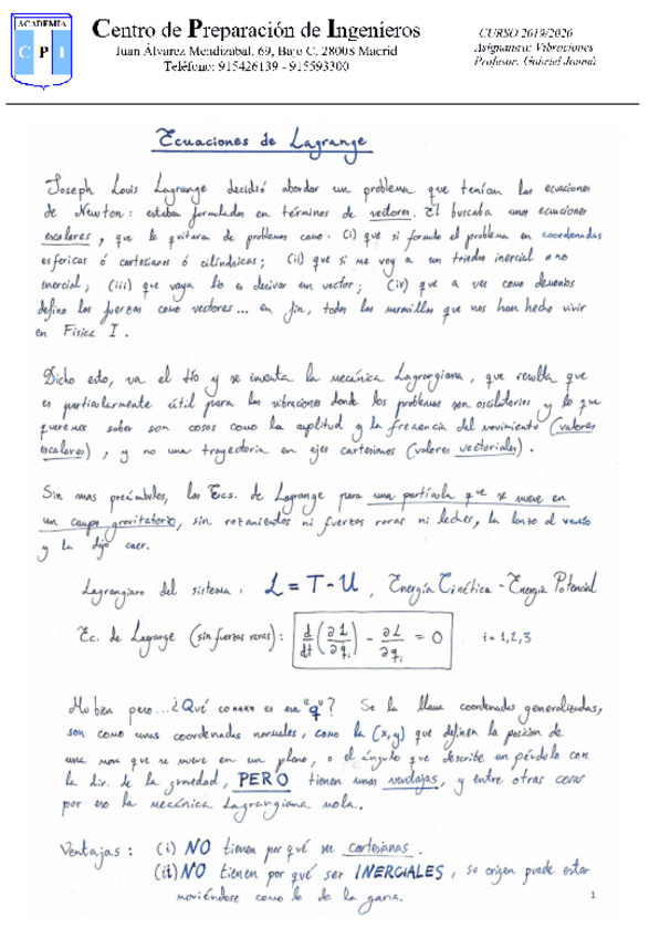 Teoría Ecuaciones Lagrange - CPI