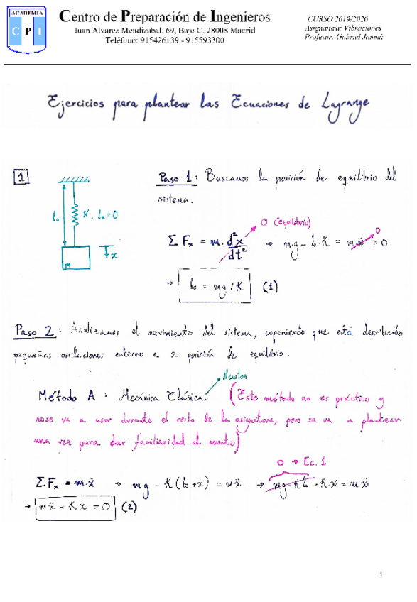 He publicado nuevos apuntes de 3º Vibraciones: Teoría Ecuaciones Lagrange - CPI