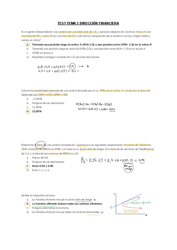 He publicado nuevos examenes de 3º Dirección Financiera: Exámenes online (test) Parcial 1 - dirección financiera