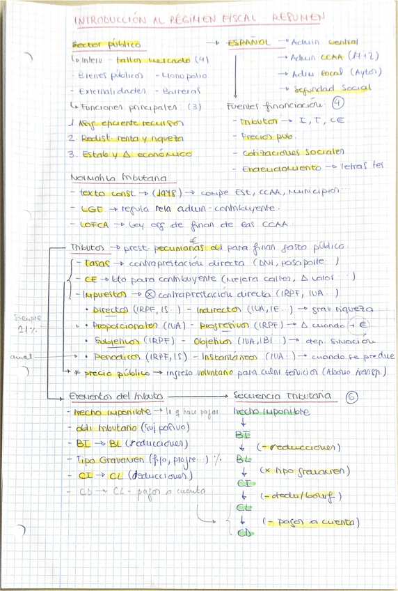 Resumen a mano + resumen del CEF con apuntes de todo el tema introductorio a Régimen fiscal. Sirve para liberar el primer examen de la introducción