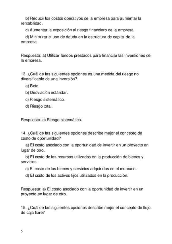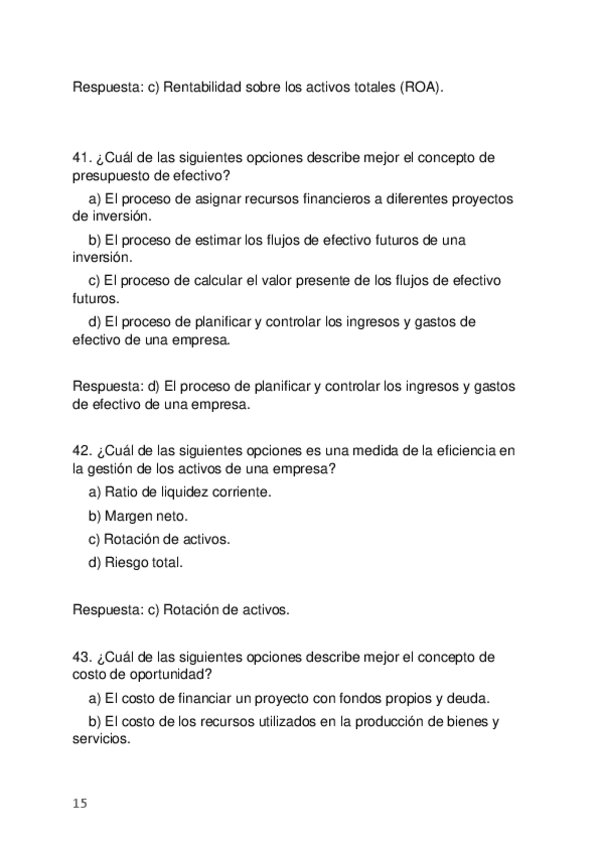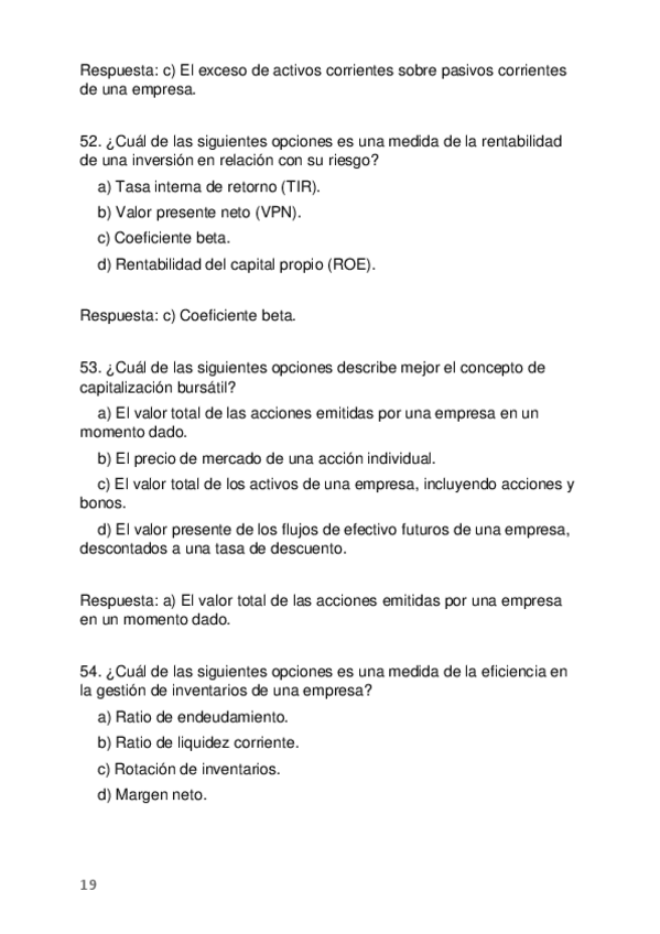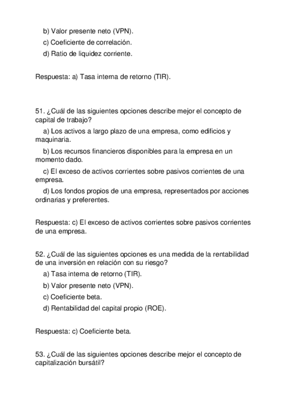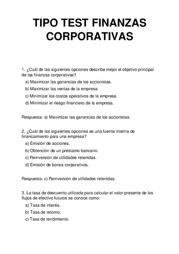 Más TESTS con respuestas para la Recuperación de FINANZAS