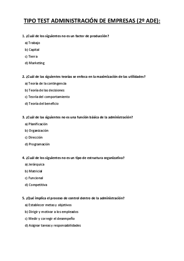 Subidas 100 Preguntas Test del temario de Administración de Empresas