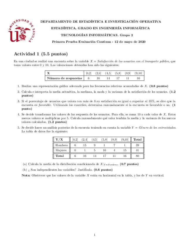 He publicado nuevos examenes de 1º Estadística: Primer parcial resuelto 12 Mayo 2020