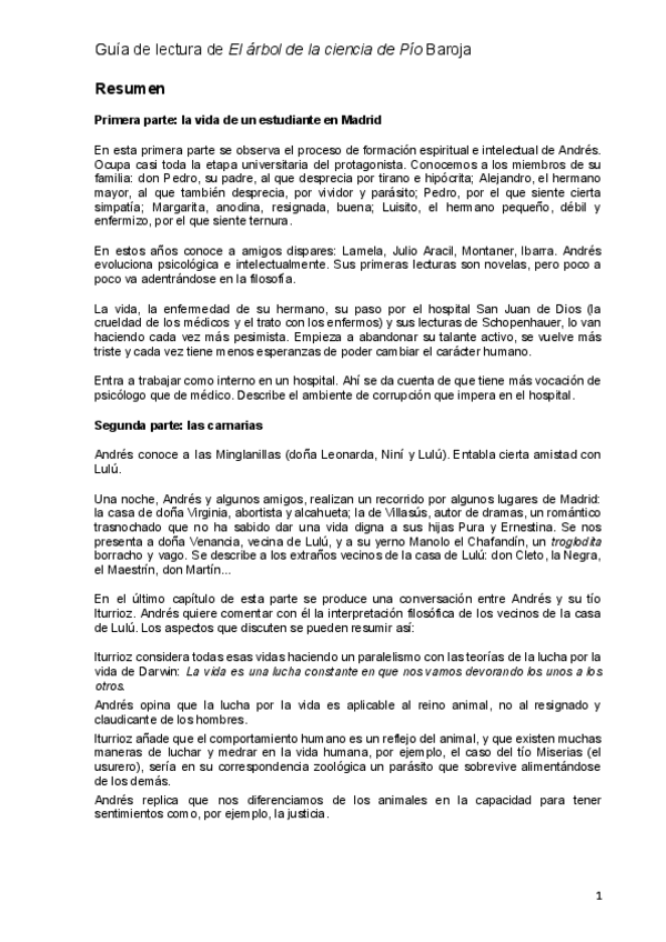 Guia del Árbol de la Ciencia de Pio Baroja para selectividad/PVAU