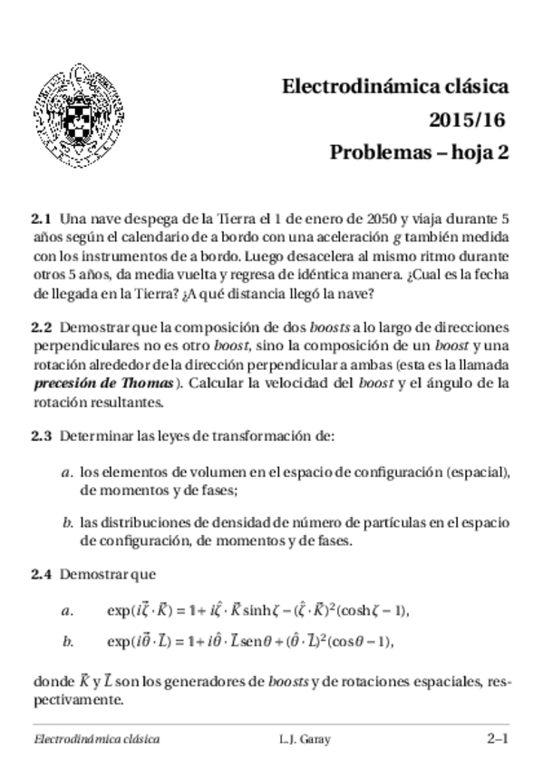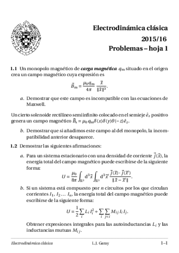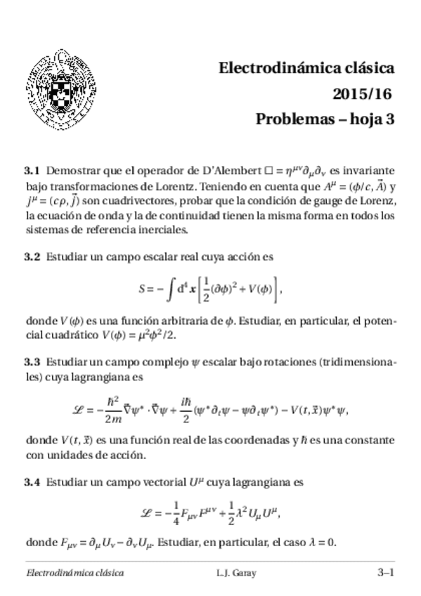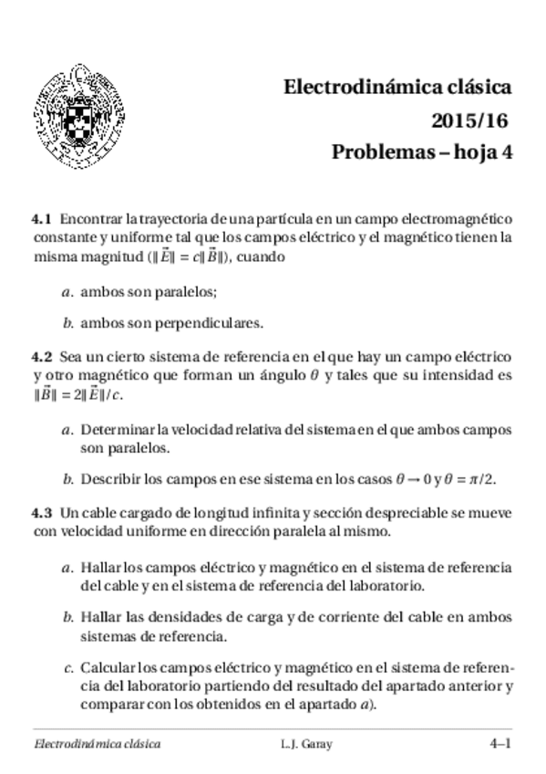He publicado nuevos ejercicios de 4º Electrodinámica Clásica: entregables