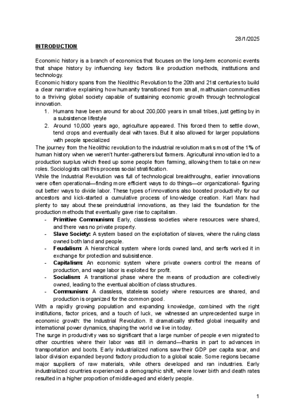 He publicado nuevos apuntes de 1º Historia de la Economía Mundial: Historia de la economía