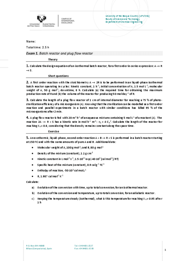 He publicado nuevos examenes de 3º Diseño de Reactores: Sin resolver INGLÉS