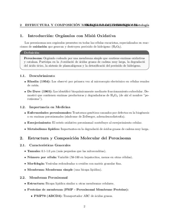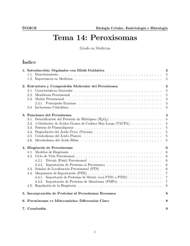 Tema 14. Peroxisomas. Estructura y composición molecular. Funciones del peroxisoma. Biogénesis. Incorporación de proteínas al peroxisoma.