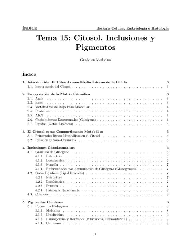 Tema 15. Citosol. Composición de la matriz citosólica. Inclusiones. Pigmentos.