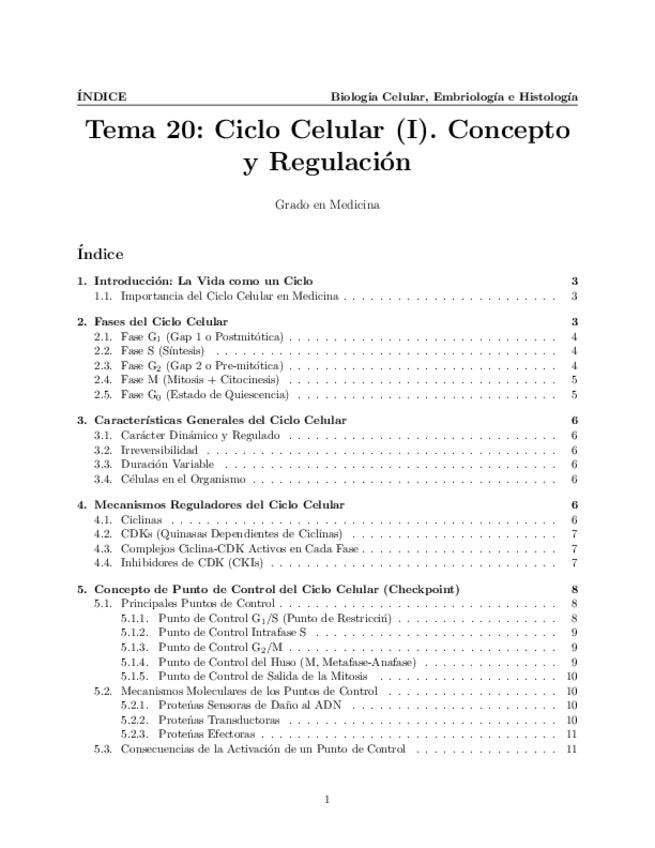 Tema 20. Ciclo Celular (I). Concepto. Fases del ciclo celular. Características generales del ciclo celular. Mecanismos reguladores. Concepto de punto de control del ciclo celular