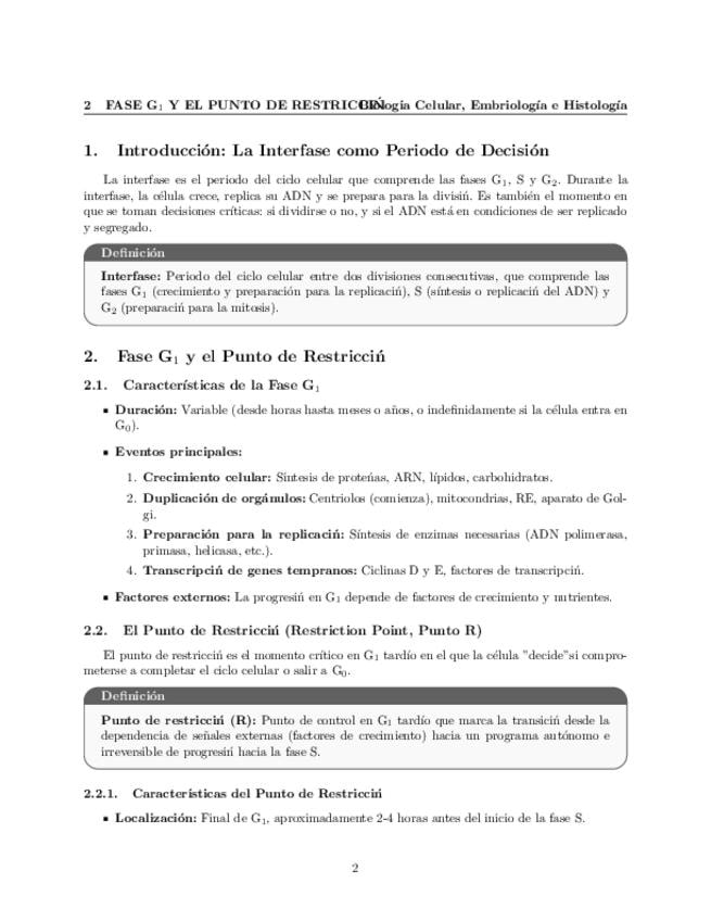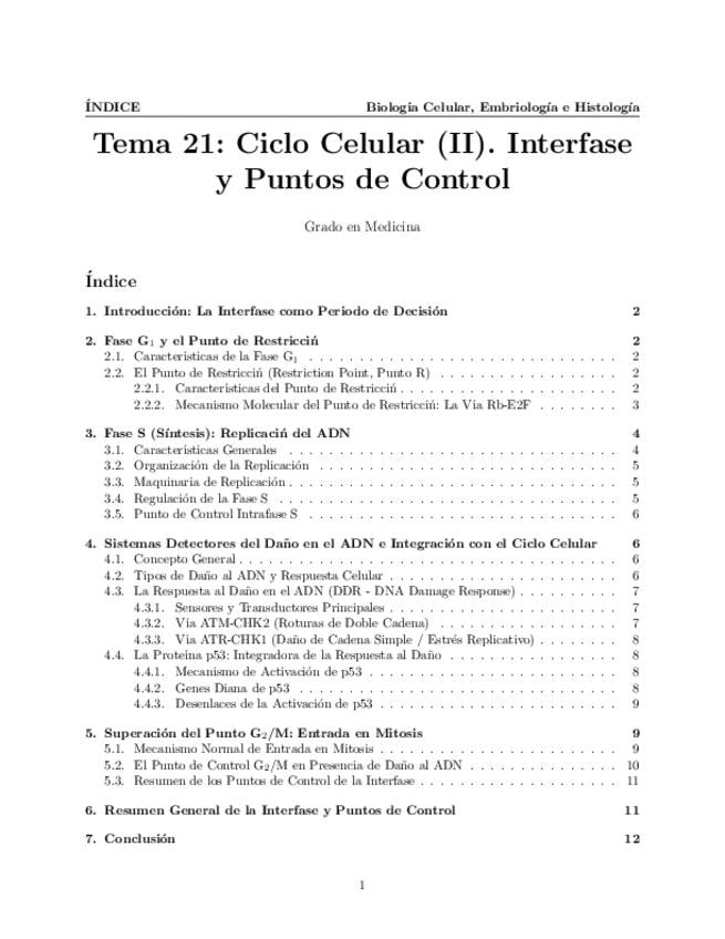 Tema 21. Ciclo Celular (II). Interfase. El punto de restricción. Fase de Síntesis. Sistemas detectores del daño en el DNA: integración con la progresión en el ciclo celular. Superación del punto G2/M: entrada en mitosis