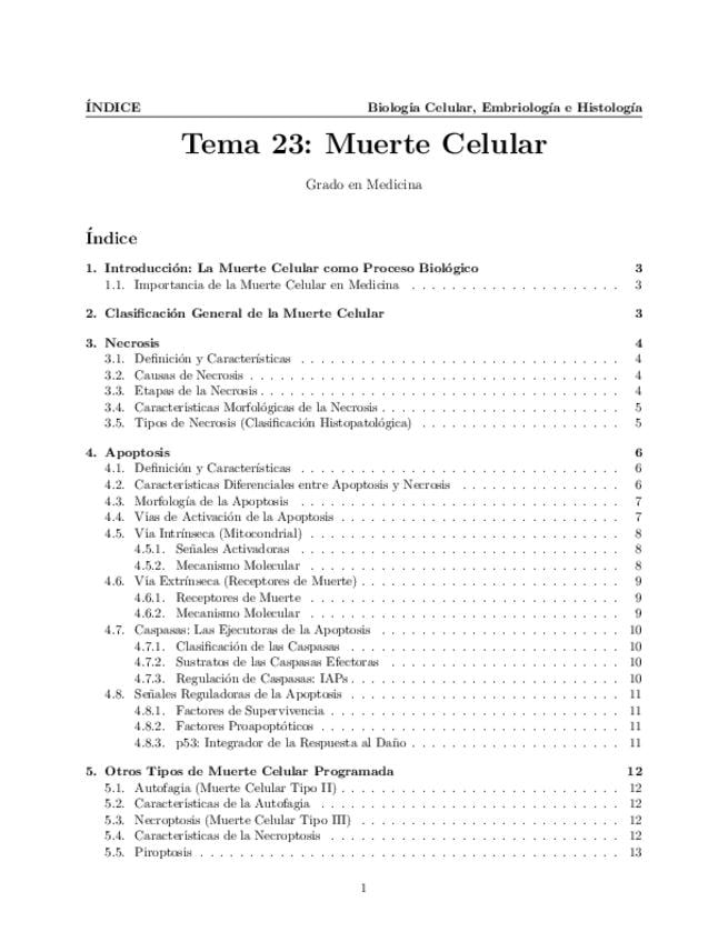 Tema 23. Muerte Celular. Generalidades. Necrosis: etapas, causas y consecuencias. Apoptosis: etapas, papel de las caspasas, moléculas y señales reguladoras. Otros tipos de muerte celular programada.