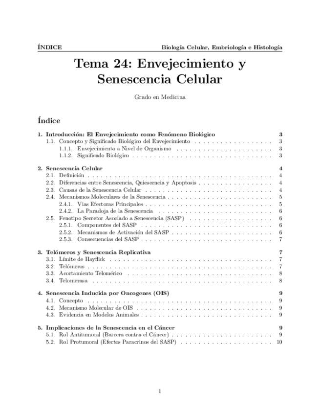 Tema 24. Envejecimiento y Senescencia Celular. Envejecimiento: concepto y significado biológico. Senescencia celular: causas y mecanismos. Implicaciones en el cáncer y envejecimiento.