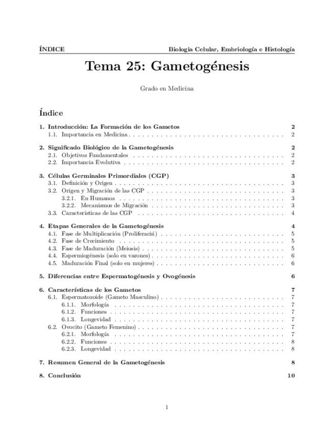 Tema 25. Gametogénesis. Significado biológico del proceso. Células germinales primordiales. Etapas generales de la gametogénesis. Características de los gametos.