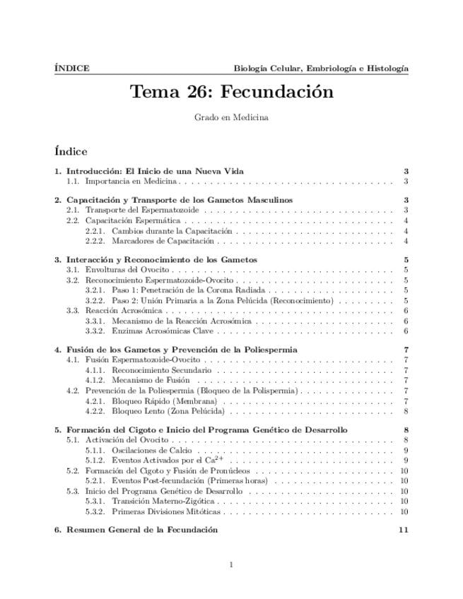 Tema 26. Fecundación. Capacitación y transporte de los gametos masculinos. Interacción y reconocimiento de los gametos. Reacción acrosómica. Fusión de los gametos y prevención de la poliespermia. Formación del cigoto e inicio del programa genético de desa