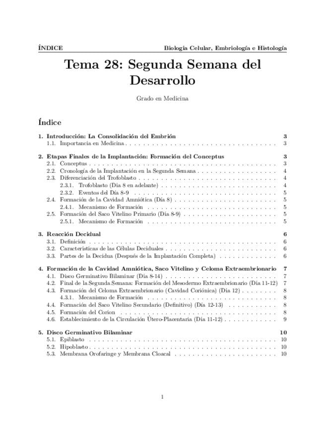 Tema 28. Segunda Semana del Desarrollo. Etapas finales de la implantación: formación del conceptus. Reacción decidual. Formación de la cavidad amniótica, saco vitelino y celoma extraembrionario. Disco germinativo bilaminar. Implantación anormal.
