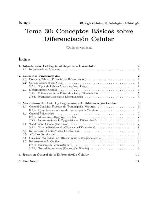 Tema 30. Conceptos Básicos sobre Diferenciación Celular. Conceptos de célula madre, determinación y diferenciación celular. Mecanismos de control y regulación de la diferenciación celular.