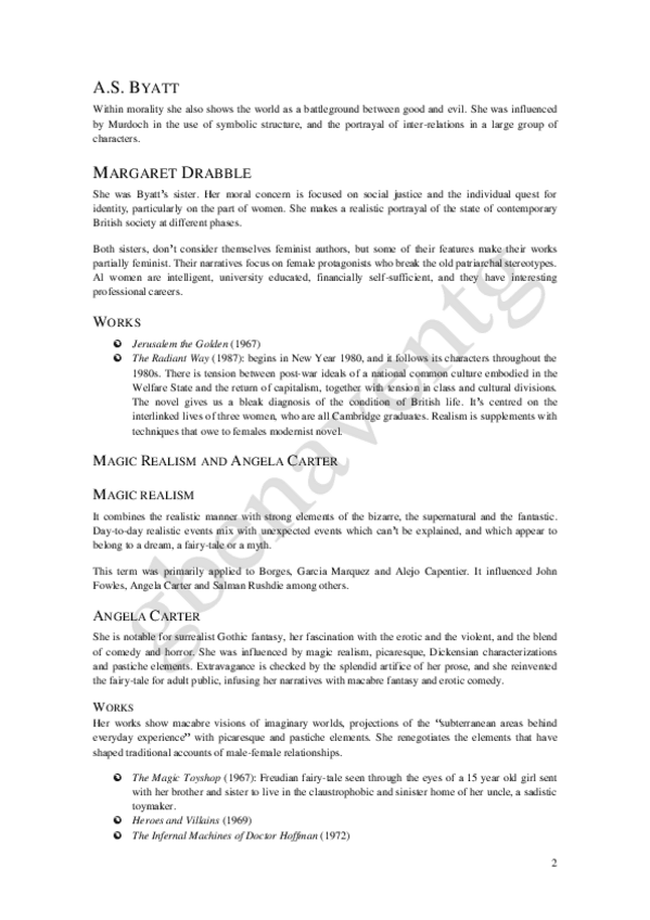 He publicado nuevos apuntes de 2º Narrativa inglesa de los siglos XX y XXI: 07. Feminist novelists.pdf