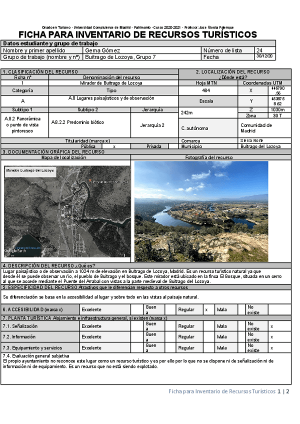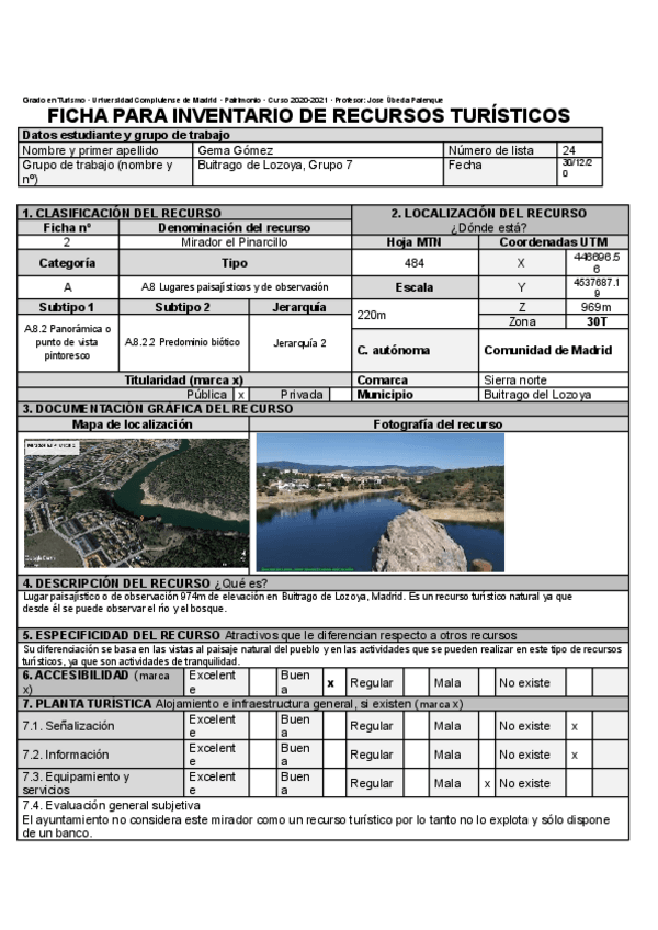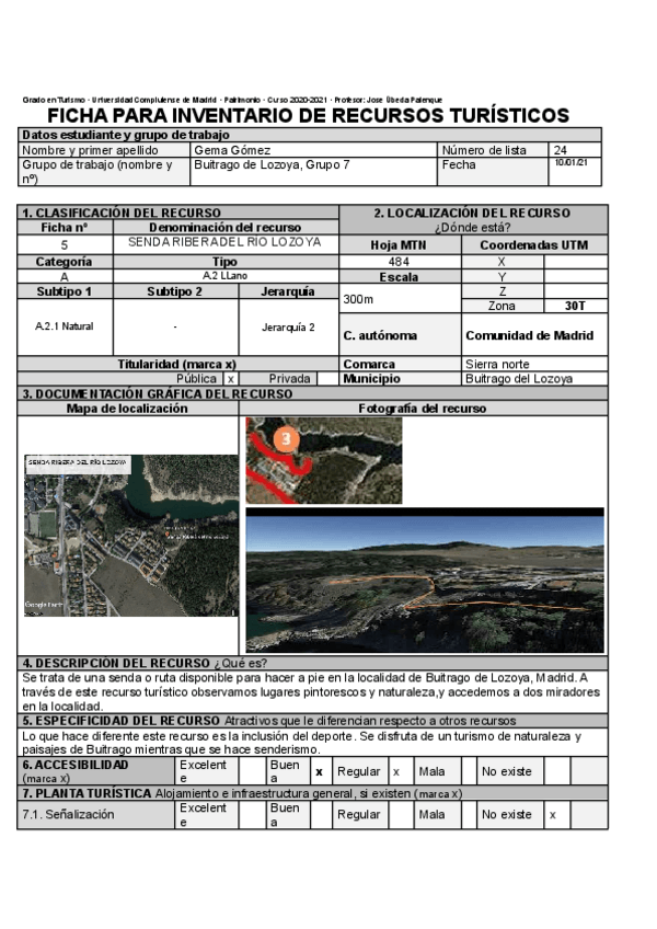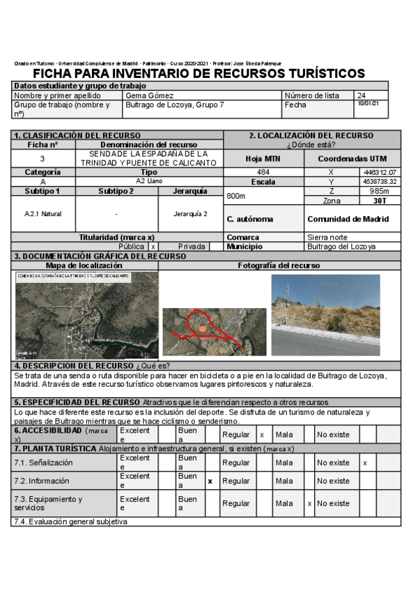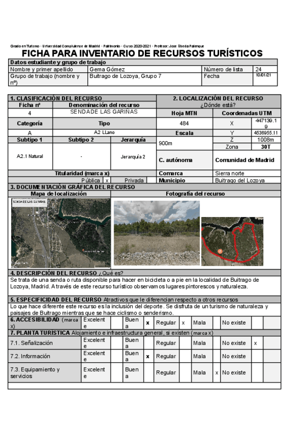 He publicado nuevos ejercicios de 2º Patrimonio territorial, recursos y flujos turísticos.: Inventarios