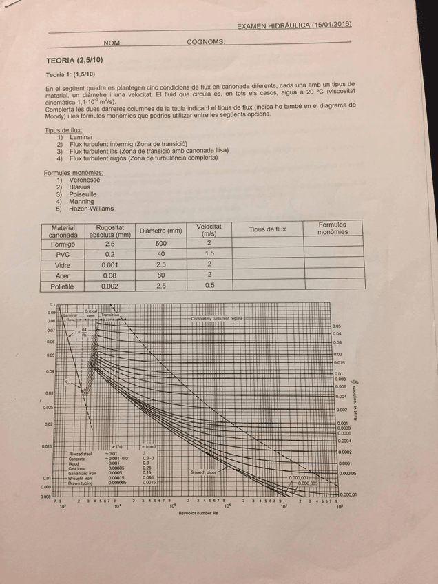 He publicado nuevos examenes de 2º Hidráulica: Teoria Examen 2015-2016