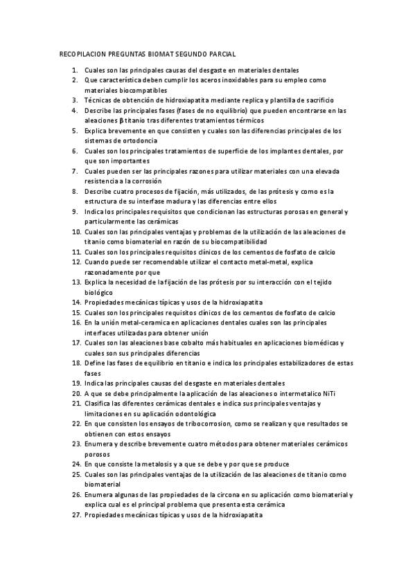 He publicado nuevos examenes de 3º Biomateriales: RECOPILACION-PREGUNTAS-BIOMAT-SEGUNDO-PARCIAL.pdf