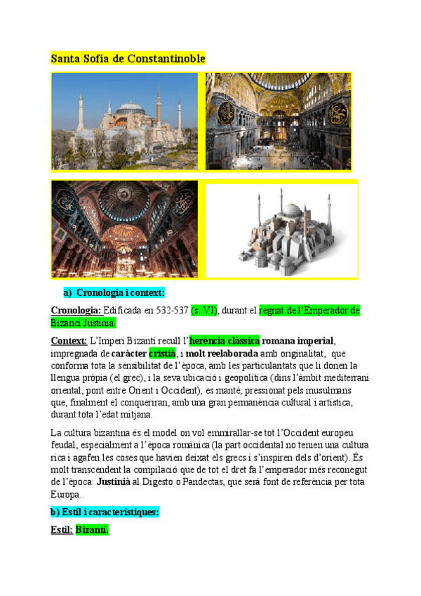 En este documento PDF se encuentra un resumen completo del Santa Sofia de Constantinopla. Es un ejercicio tipo examen con todo lo que se necesita responder para sacar la máxima nota. Incluye puntos clave del análisis, el contexto, características... ¡Es
