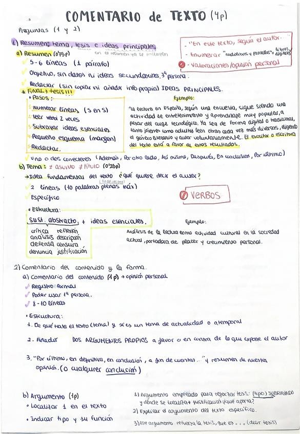 Resumen y esquema de lo necesario para el comentario de texto de la PAU: resumen, tema, opinión, argumentos y cohesión